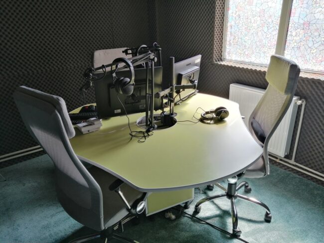 STUDIO PODCAST / BROADCASTStudioul nostru este ideal pentru realizarea de emisiuni TV, astfel că poate fi transformat in studio de stiri, de dezbateri sau chiar de panneling!